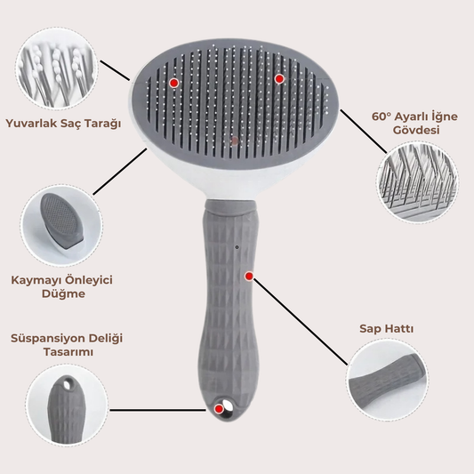 PatiKöşk™ Otomatik Temizlenen Yuvarlak Evcil Hayvan Tarağı (Ürün Kodu: PK 25)