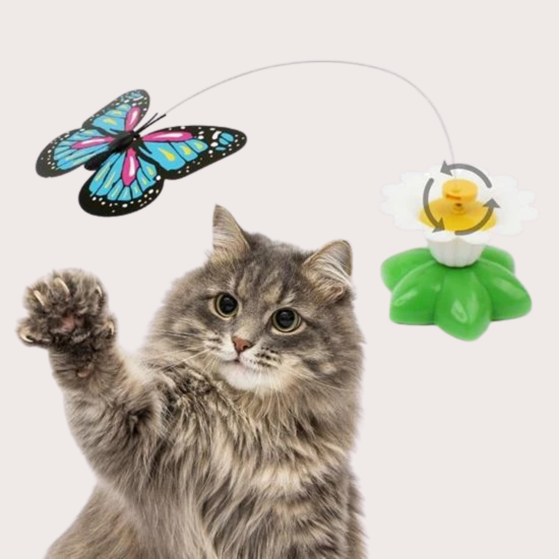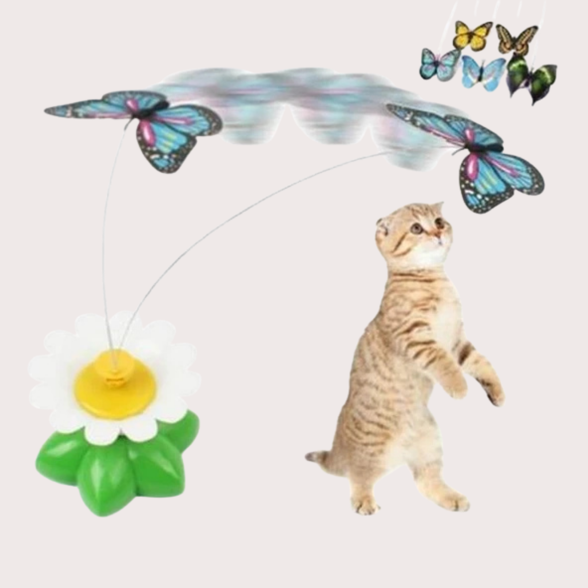 Dönen Kelebek, Bitmeyen Merak: Hareketli kanatlar kedinizin dikkatini çeker, oyun süresini uzatır ve sıkılmasını önler.