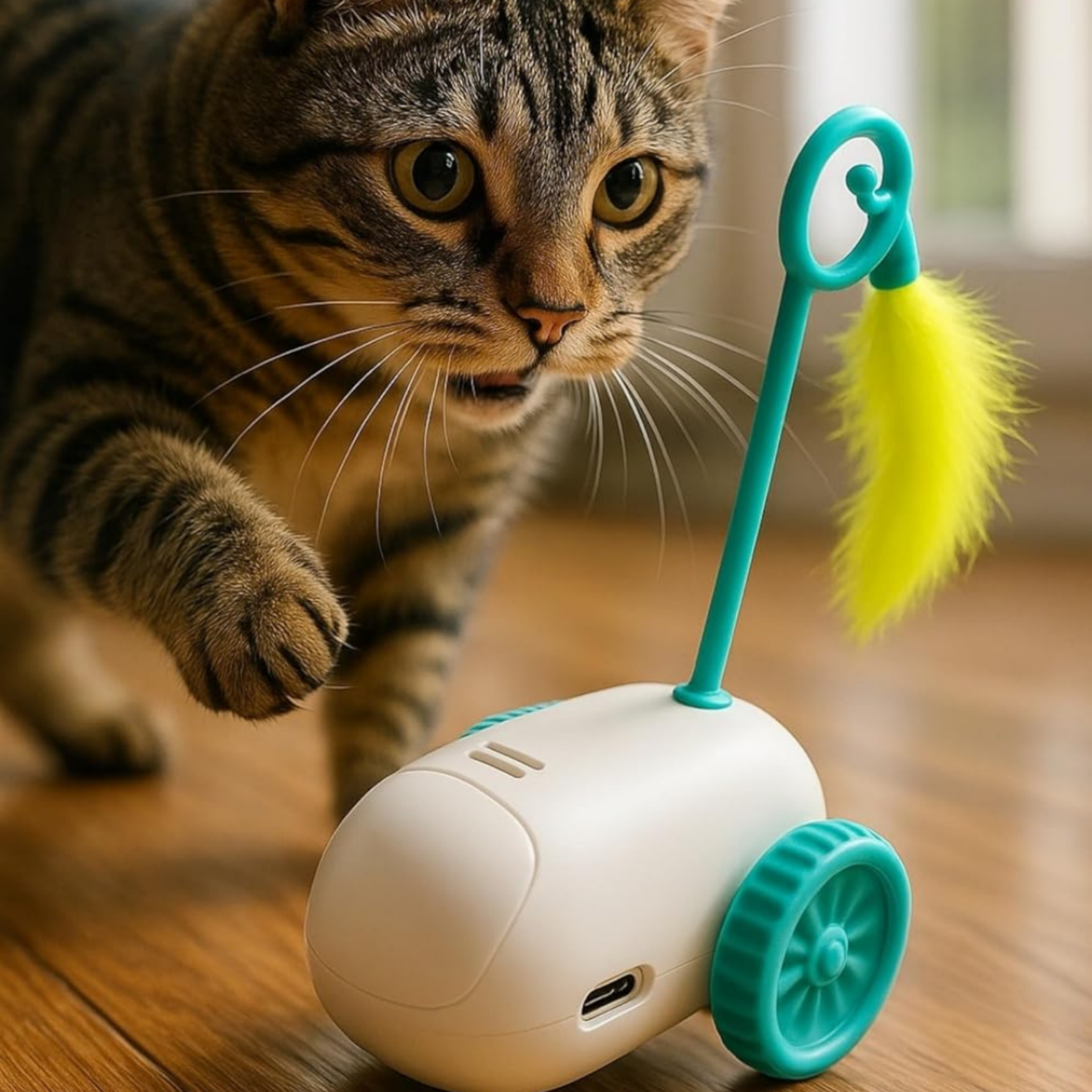 USB ile kolayca şarj edilen bu hafif ve kompakt oyuncak, evin her köşesinde ya da seyahatlerde rahatlıkla kullanılabilir. Basit açma/kapama mekanizması sayesinde tek dokunuşla çalışır, evcil hayvanınızın oyun keyfi hiç kesilmez. Hem eğlenceli hem de öğretici olan bu robot oyuncak, patili dostunuzun yalnız zamanlarını kaliteli hale getirir, siz de onun mutlu ve sağlıklı gelişimini keyifle izlersiniz.